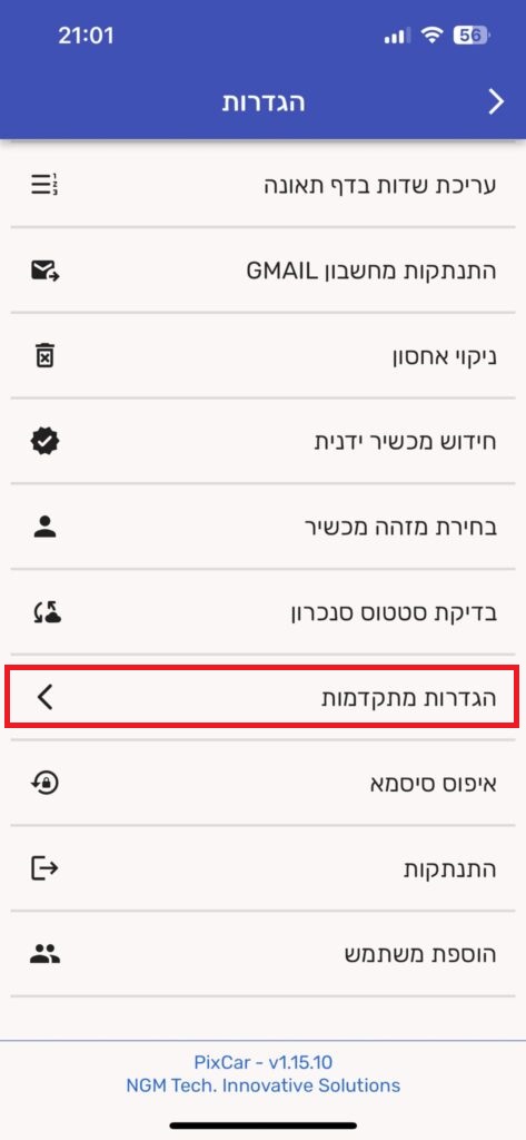 שלב 2 – כניסה ל-"הגדרות מתקדמות":