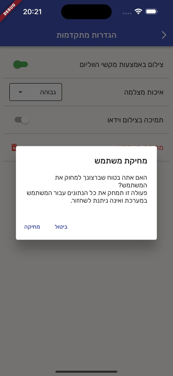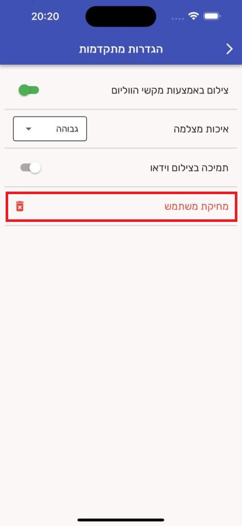 מדריך זה הינו עבור משתמשים אשר מעוניינים למחוק את המשתמש והמידע השמור באפליקציית "PixCar".